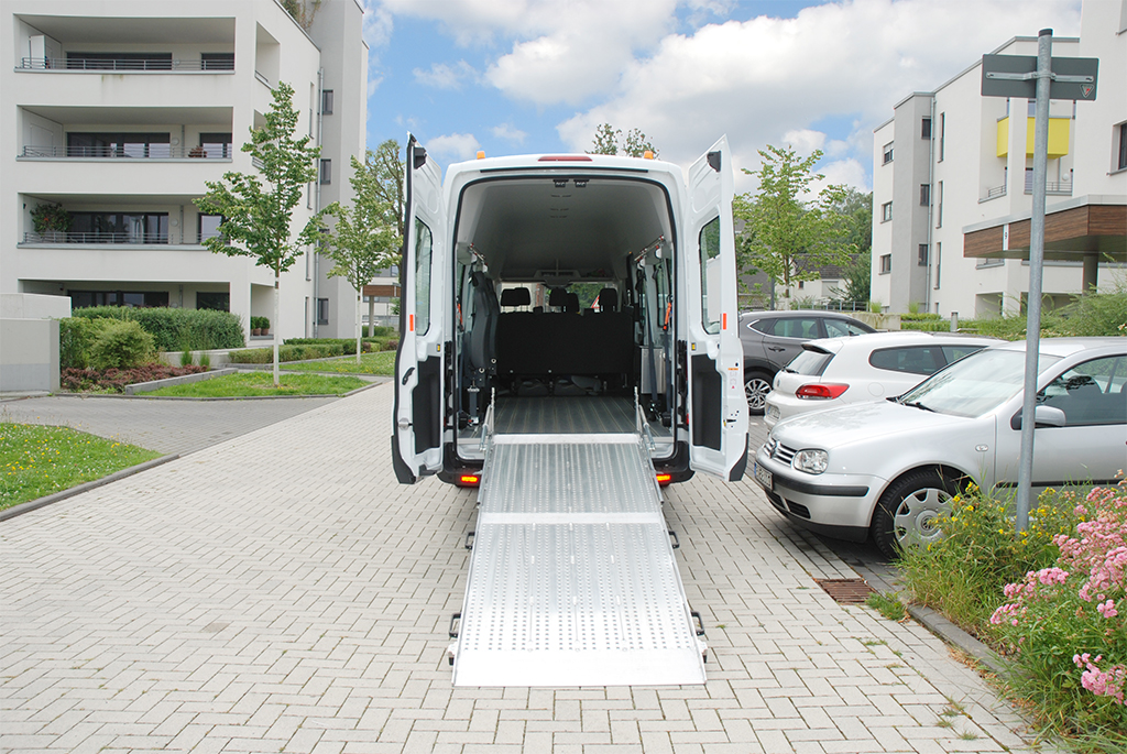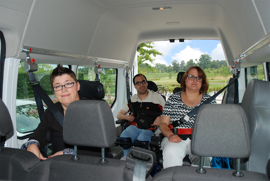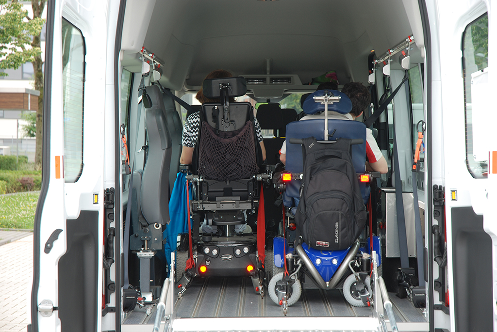So sind all unsere Fahrzeuge auch für gesundheitlich beeinträchtigte Personen geeignet und verfügen u.a. über moderne 4-Punkt-Rückhaltesysteme und Auffahrrampen für Rollstühle.